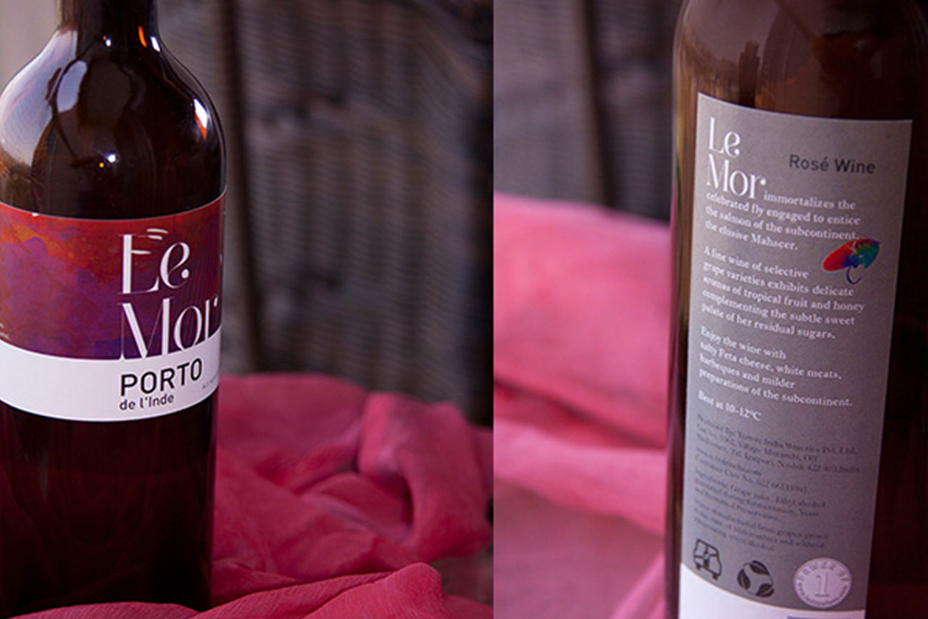 Wine Labels based on the fish fly concept. Le Mor is a kind of fish fly, which is exquisite due to its vibrant colours. The name also refers to the peacock (in hindi). Hence, to get the concepts together, we came up with this design solution, wherein the front label focuses on the aesthetic details of the feather in colours corresponding to the type of wine and in the back, we revealed the true identity and a brief description of the brand.