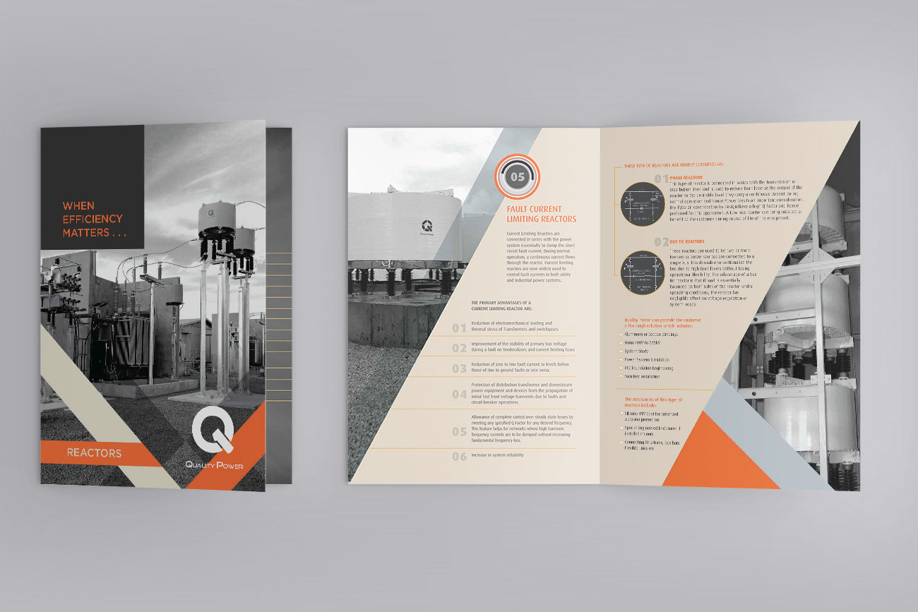 Quality Power, a manufacturing leader in all things power, wanted a new look for their branding collaterals, esp. Brochures. They wanted to standout in the international market. Where everyone else was going with colour and clutter of information, we used black and white images with a dash of bright colour in our design. Interesting layouts kept the brochure interesting and crisp