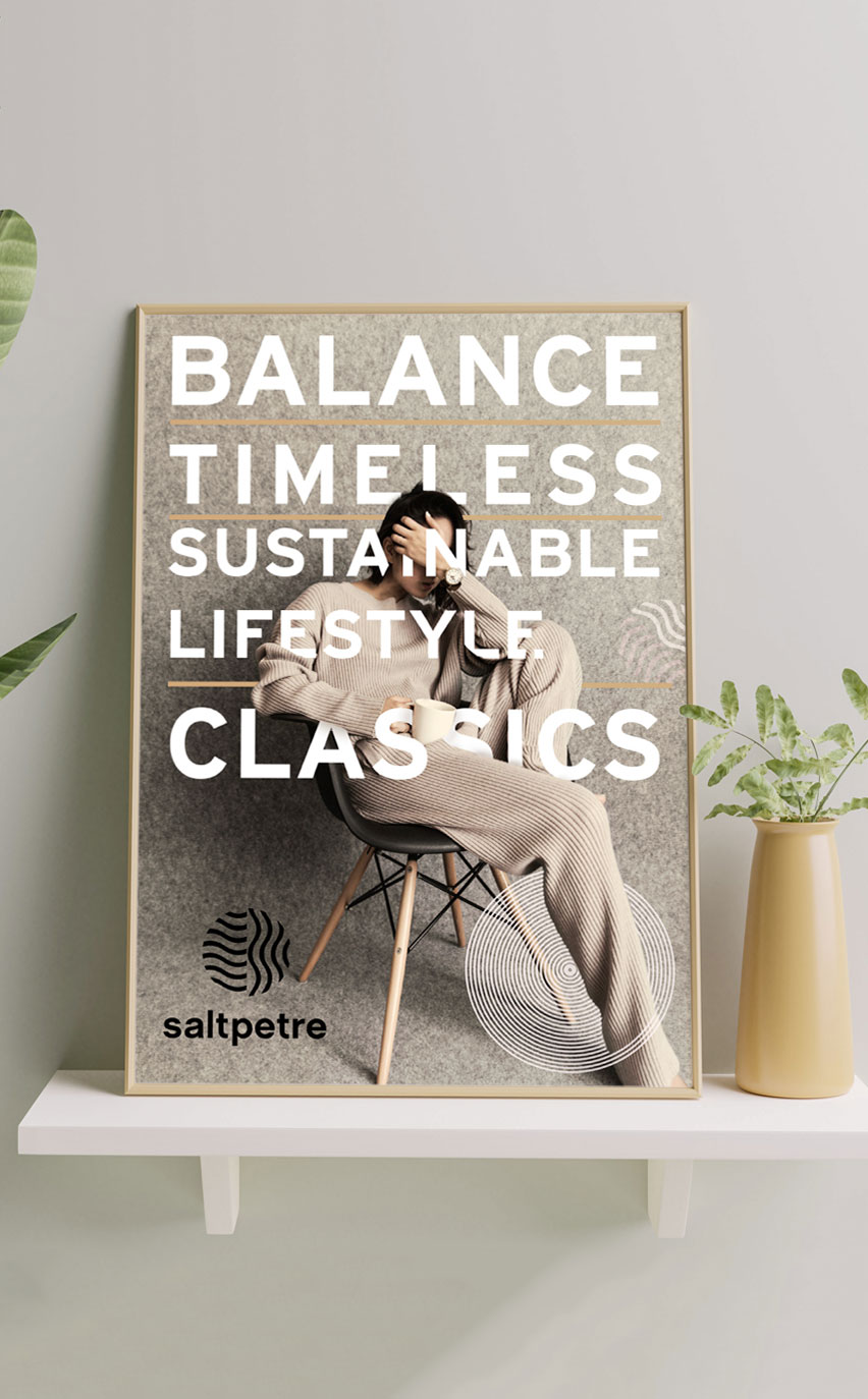 Saltpetre Logo stands for timeless style created through patterns representing Saltpetre as a substance and also relating to its products through a common pattern. It is raw, nature friendly and has a sense of zen to it.
