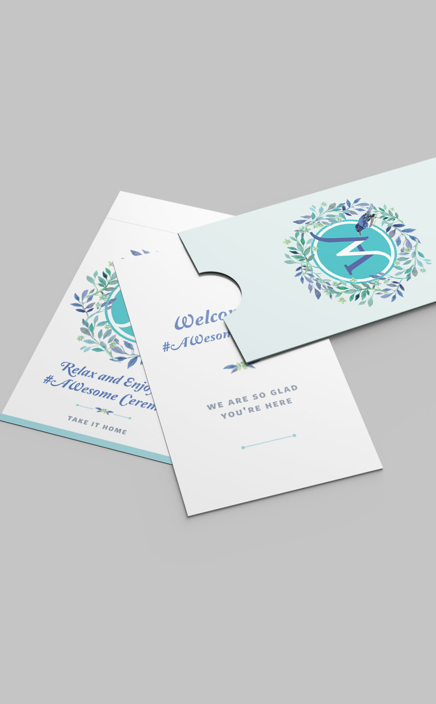 We created the logo, invitations, the program guides, the welcome kit tags, the table placement cards and a lovely book that introduced everyone present at the wedding! Now isn’t that AWesome?