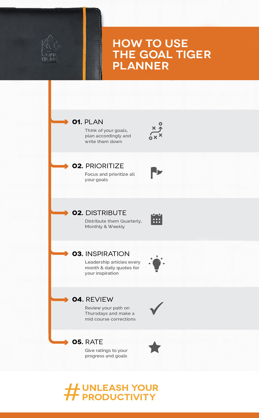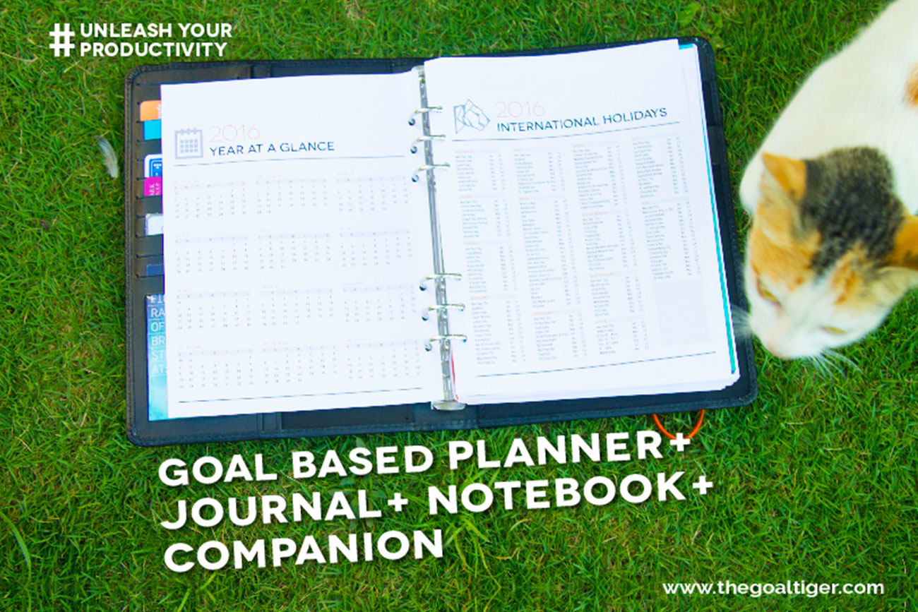 A product by 4AM Designs, the Goal Tiger is a perfect Planner, Notebook, Journal & Companion. It helps you Plan, Execute & Achieve your life goals systematically to become as fierce as a Tiger.