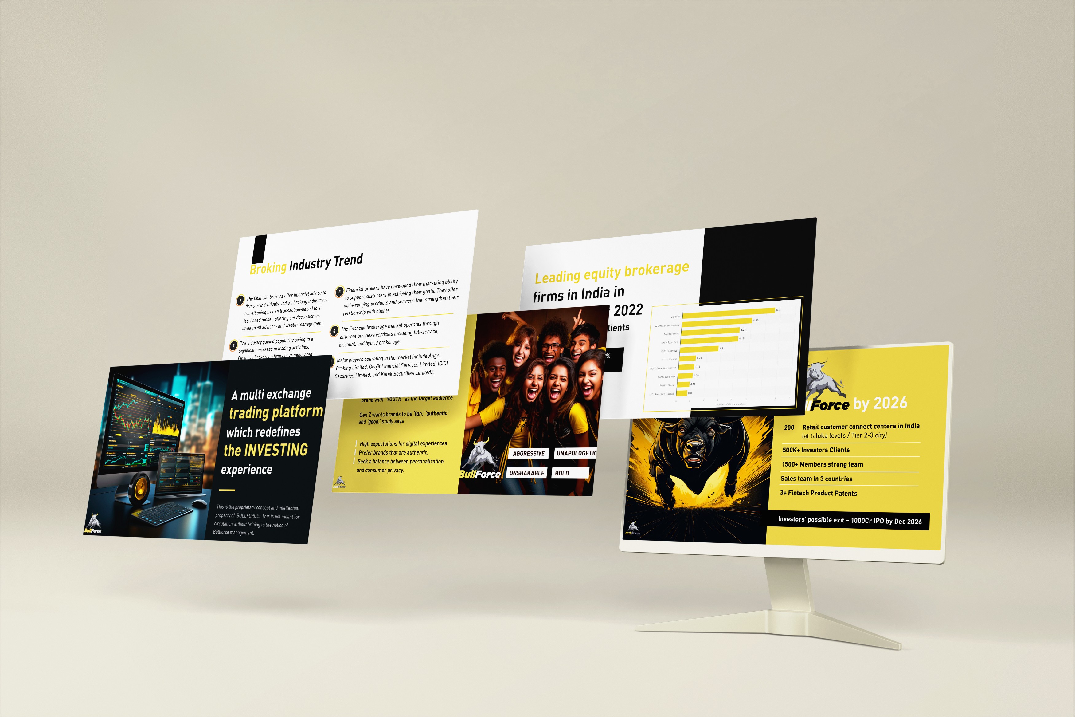 Bullforce, a trusted name in the Indian equity market for over 25 years, wanted to refresh how people saw the brand. They needed an identity that appealed to a younger, more energetic audience - including new investors from smaller towns - without losing the trust of their existing clients. The main challenge was to blend their strong legacy with a modern, approachable look, while turning their iconic ‘bull’ symbol into a powerful brand statement.