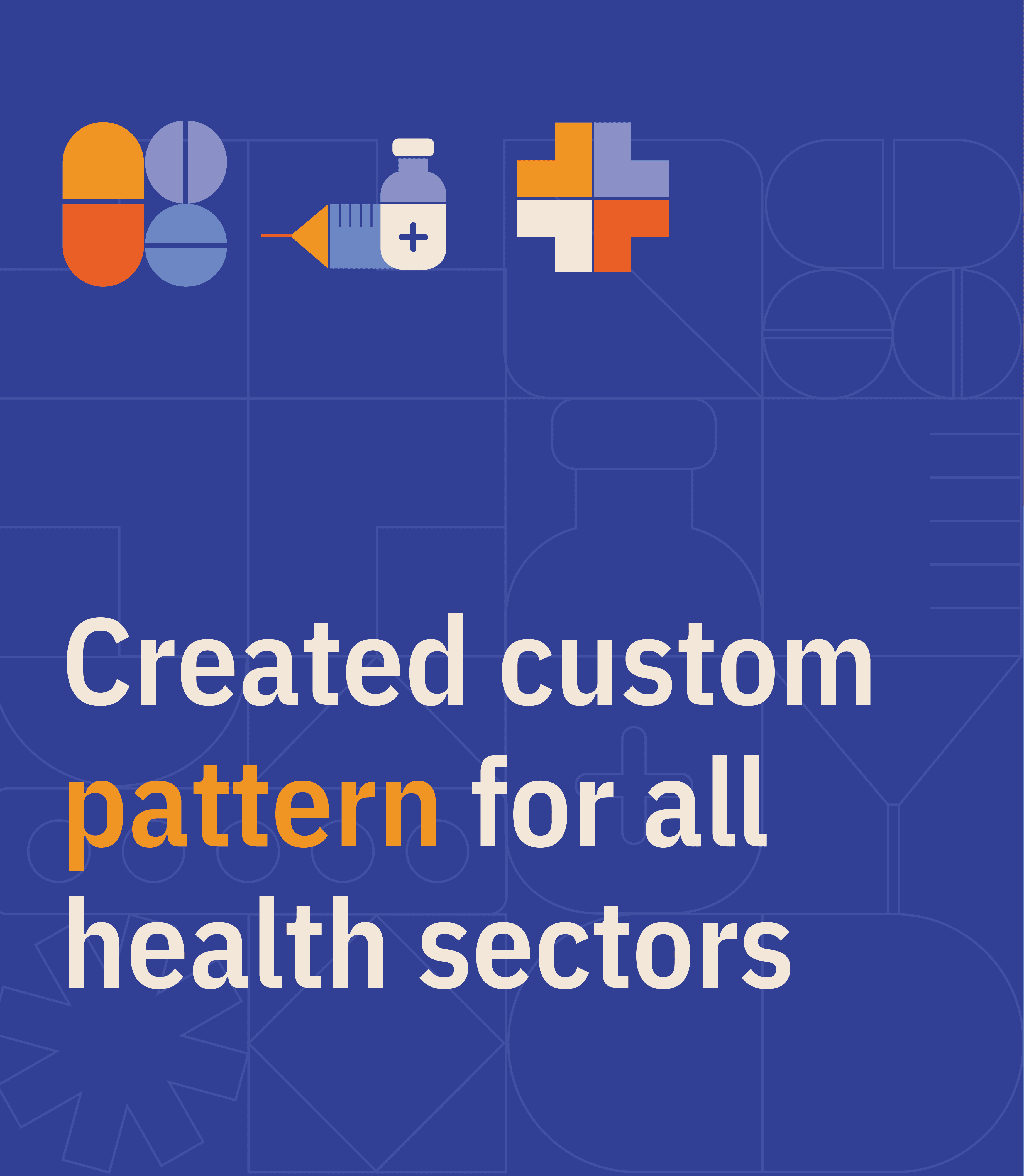 Inspired by forms of pills, vials, and crosses, the custom pattern became IPHEX’s signature — clean, modern, and full of movement.