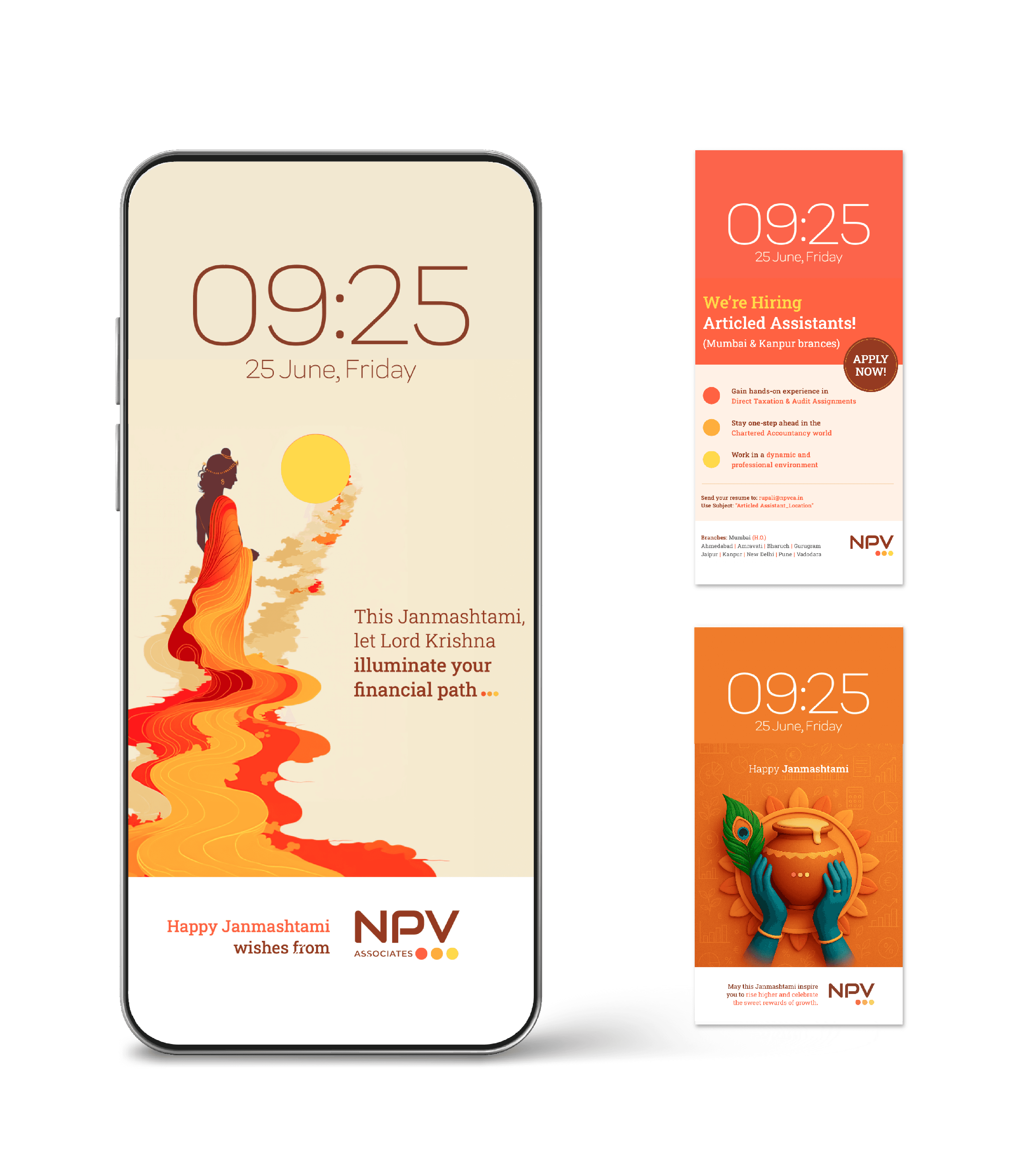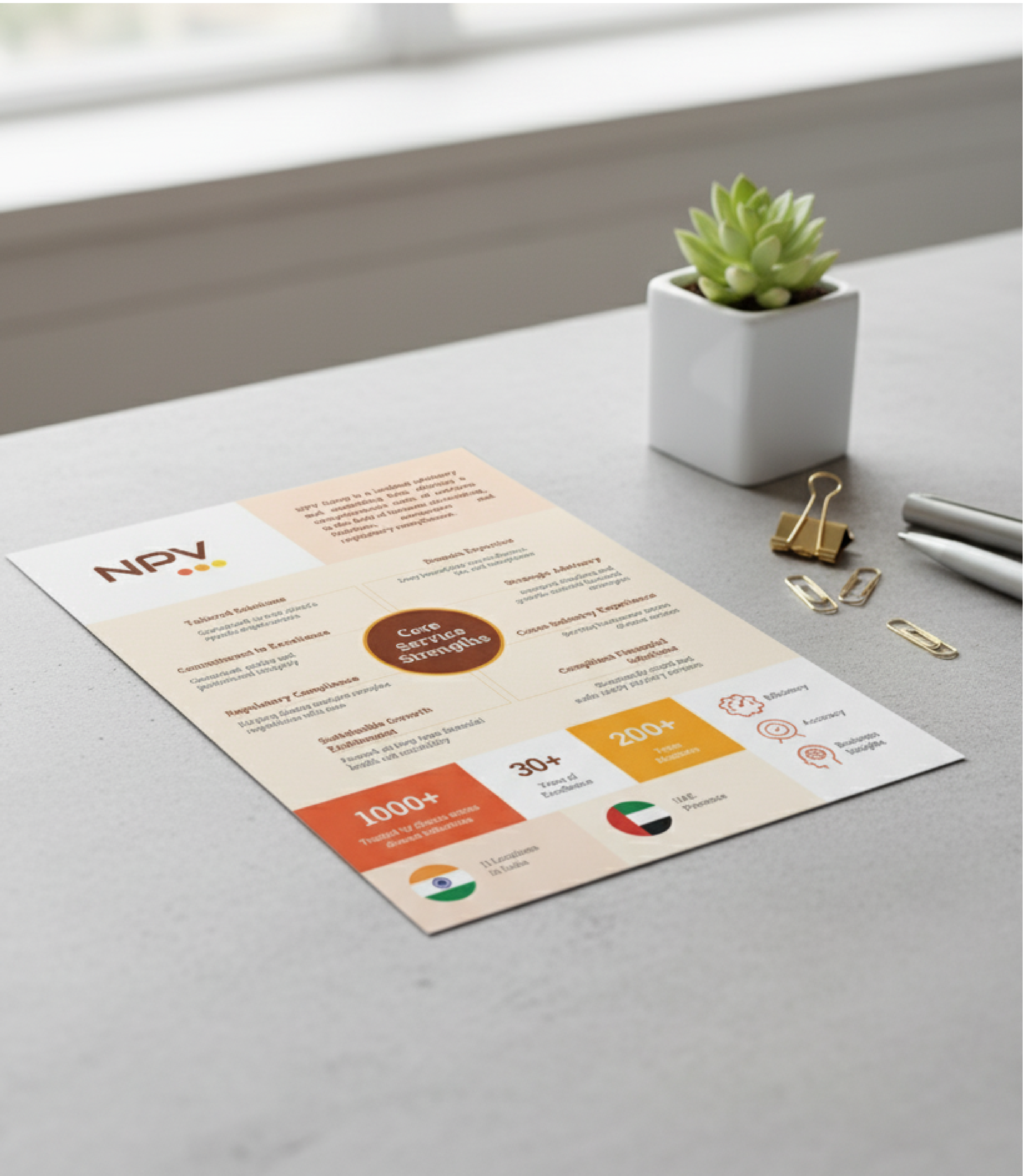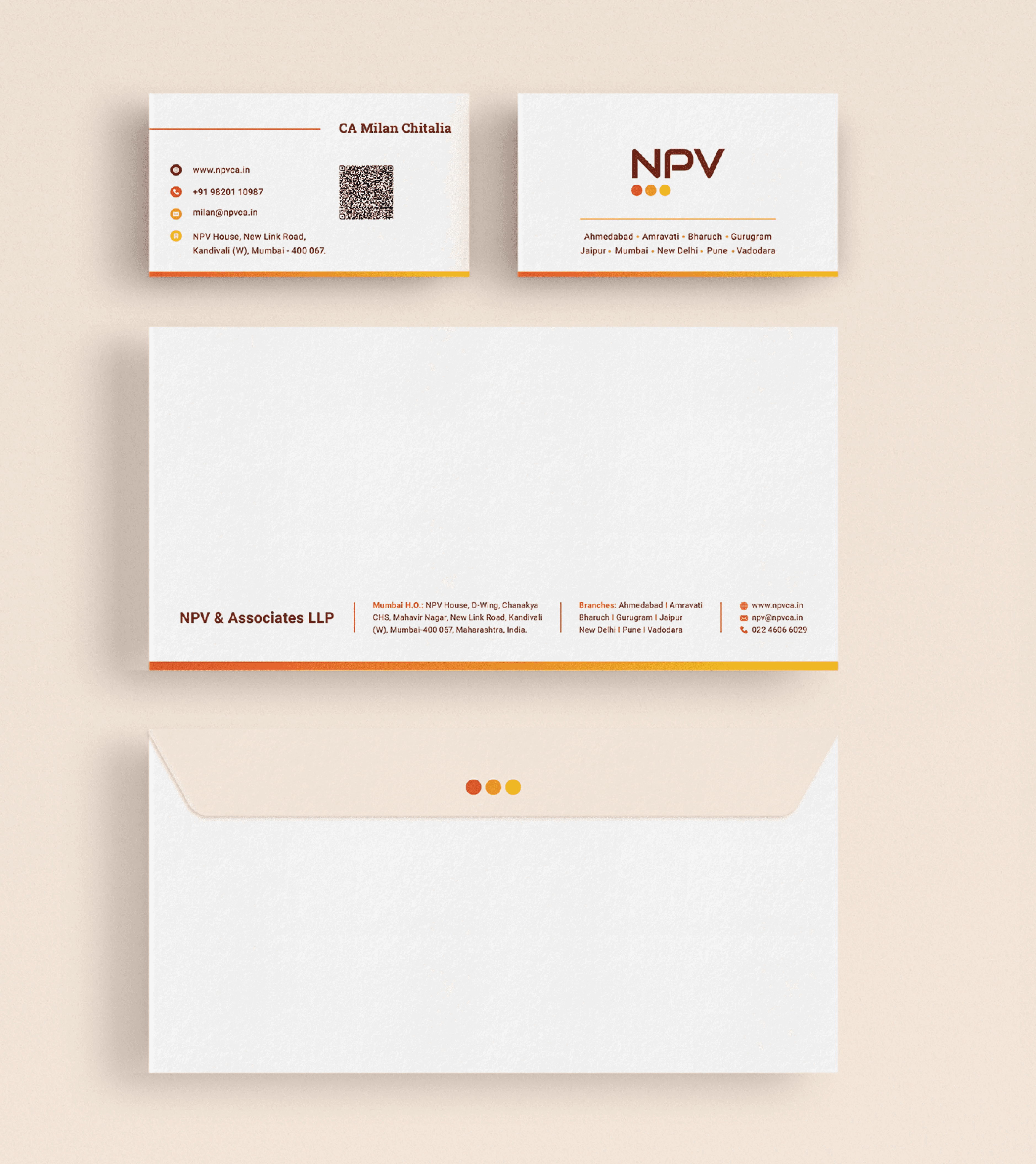We began by creating a logo rooted in purpose: the three dots symbolising Dharma (Integrity), Karma (Commitment), and Manavta (Humanity)- values that define NPV beyond being just a CA firm.